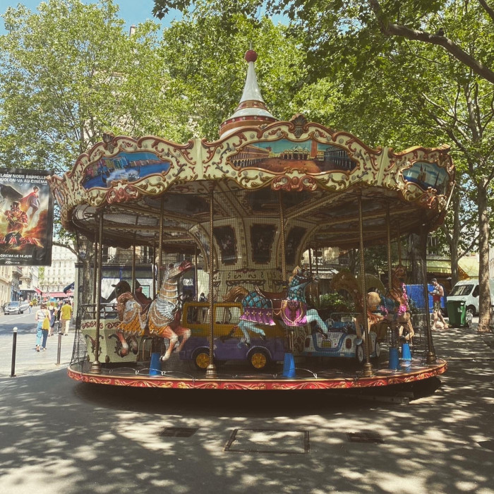 マルティール通り(Rue des Martyrs)は、、パリの9区にあるローマカトリック教会ノートルダム ド ロレットから18区のクリニャンクール地区にあるラ ヴィユーヴィル通りまでを横断しています。この通りは、パリの中でも特に魅力的な通りの一つとされています。歴史的な建物や風景、そして多様な店舗や飲食店があちらこちらにあります。伝統的なパリのパン屋、チーズ店、肉屋、魚屋、おしゃれなブティックやカフェ、レストラン、 ファッション、インテリアデザイン、アンティーク、アートなど、様々なジャンルの店舗が集まっており、個性的で魅力的なショッピング体験ができます。クリシー通り手前の9区リノ・ヴォンデュラ広場にはメリーゴーランドがあります。